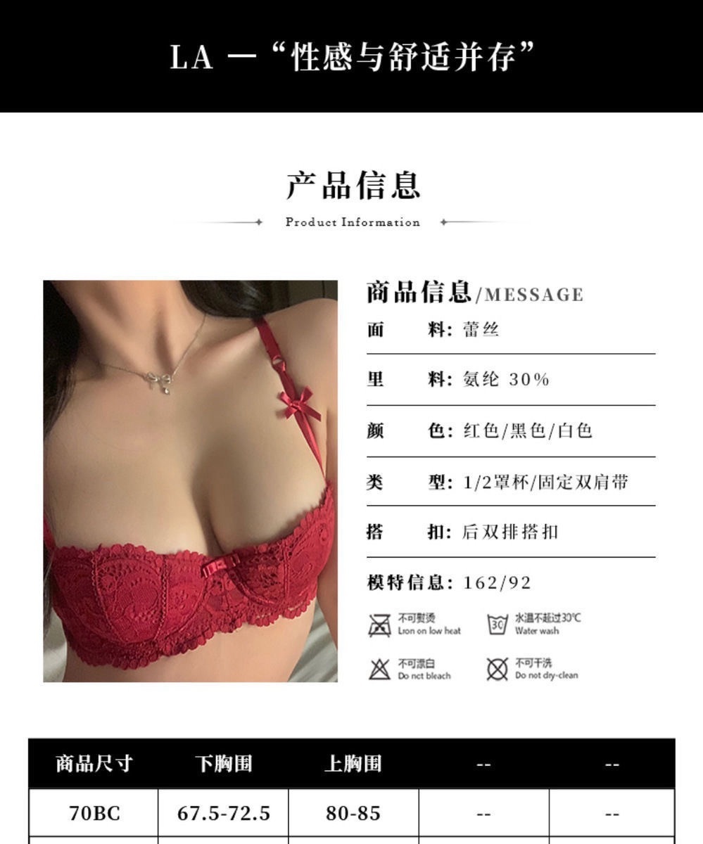 法式蕾絲設計,性感小胸/大胸皆可穿,小胸聚攏Bra,防下垂收副乳。